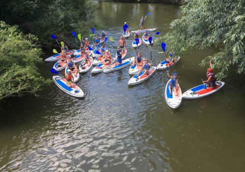 Čeká vás neobyčejný zážitek, při němž se (až) 30 spolužáků pohybuje na vodní hladině. Čekají vás zábavné hry s názvy jako: Škatule hýbejte se, Kolo kolo mlýnské, .... . „SUP je sportem, při kterém člověk rovnoměrně zapojuje celé tělo, zlepšuje smysl pro rovnováhu, a tím pádem i fyzickou kondici.